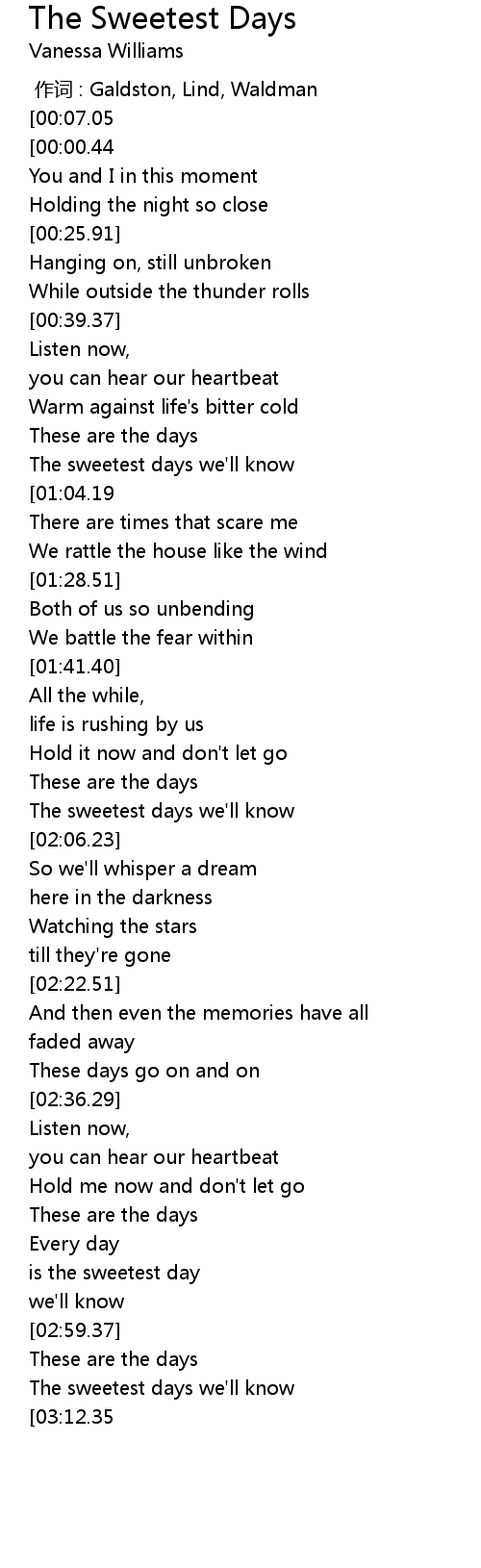 | [03:18.78][00:07.05] | Album: The Sweetest Days |