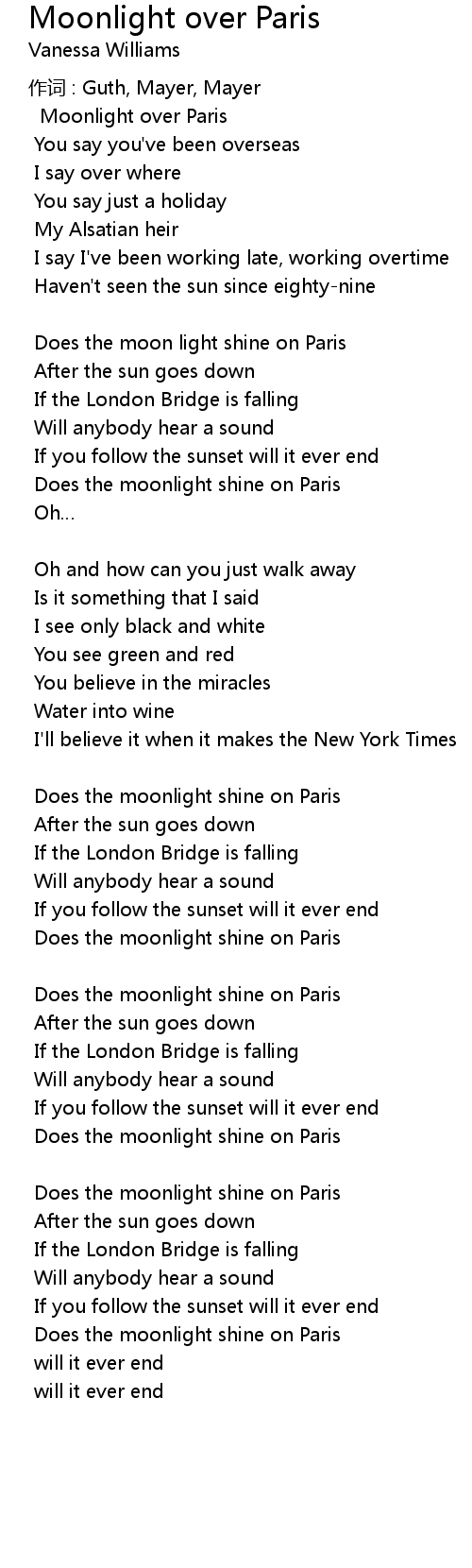 | Does the moonlight shine on Paris | |