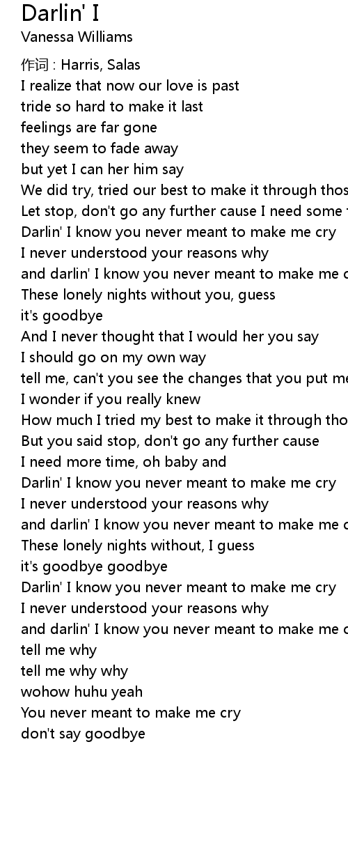 | Darlin' I know you never meant to make me cry | |