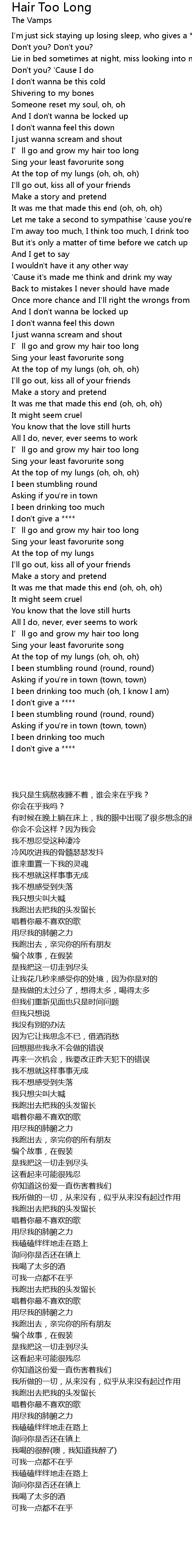 | [00:49.75] | I’ll go and grow my hair too long |