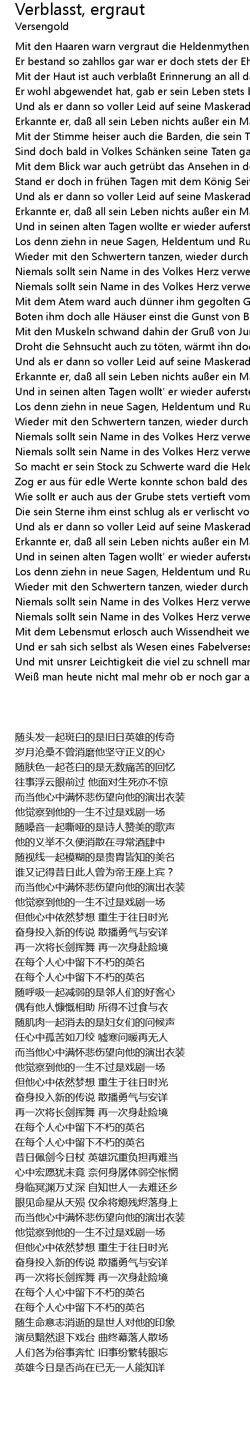 | [01:26.000] | Sind doch bald in Volkes Sch nken seine Taten ganz verklungen |
