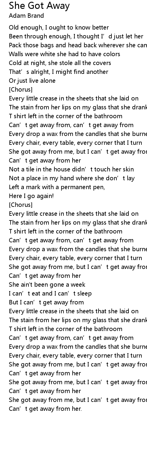 | She got away from me, but I can’t get away from | |