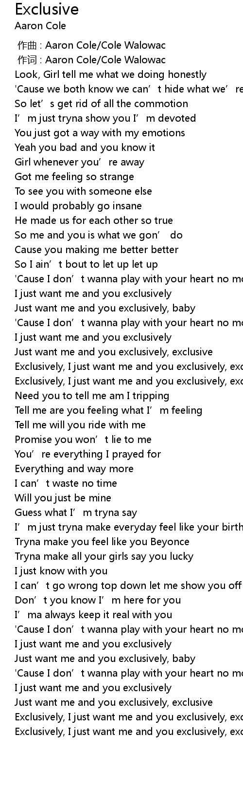 | [02:35.40] | Exclusively, I just want me and you exclusively, exclusive |