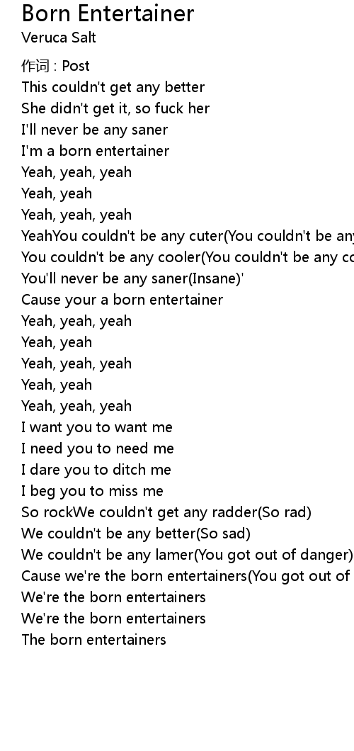 | Cause we're the born entertainers(You got out of danger) | |