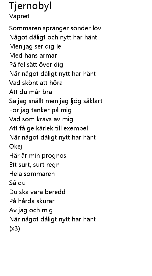 | Song | Tjernobyl |