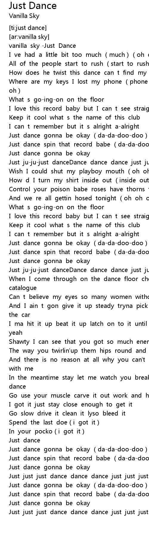 | [00:49.13] | Just dance gonna be okay dadadoodoo |
