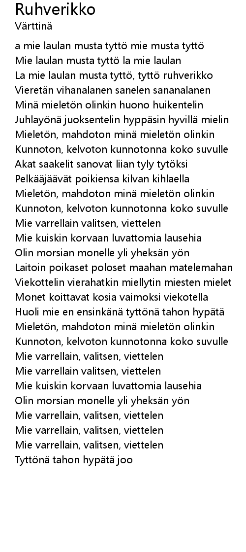| La mie laulan musta tytt, tytt ruhverikko | |