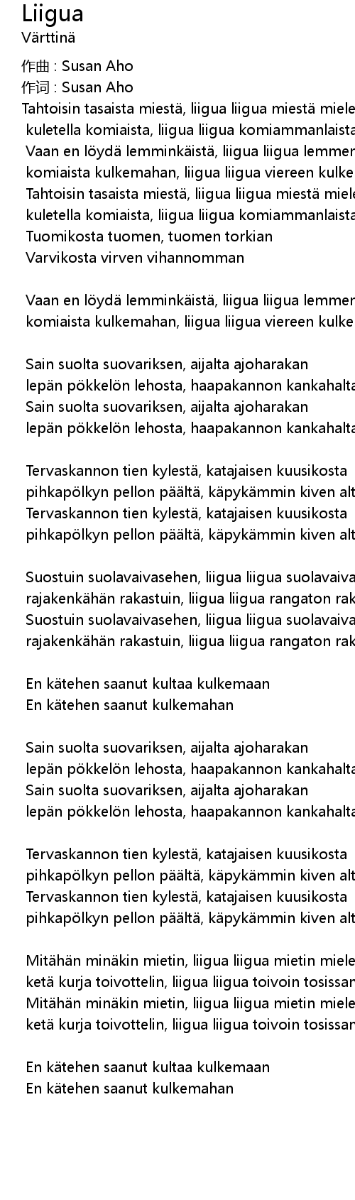 | Vaan en l yd lemmink ist, liigua liigua lemmenlohdullista | |