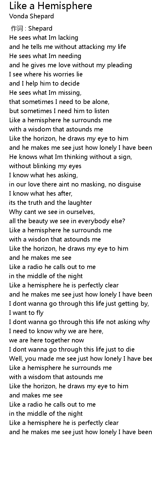 | [00:54.48] | Like a hemisphere he surrounds me |