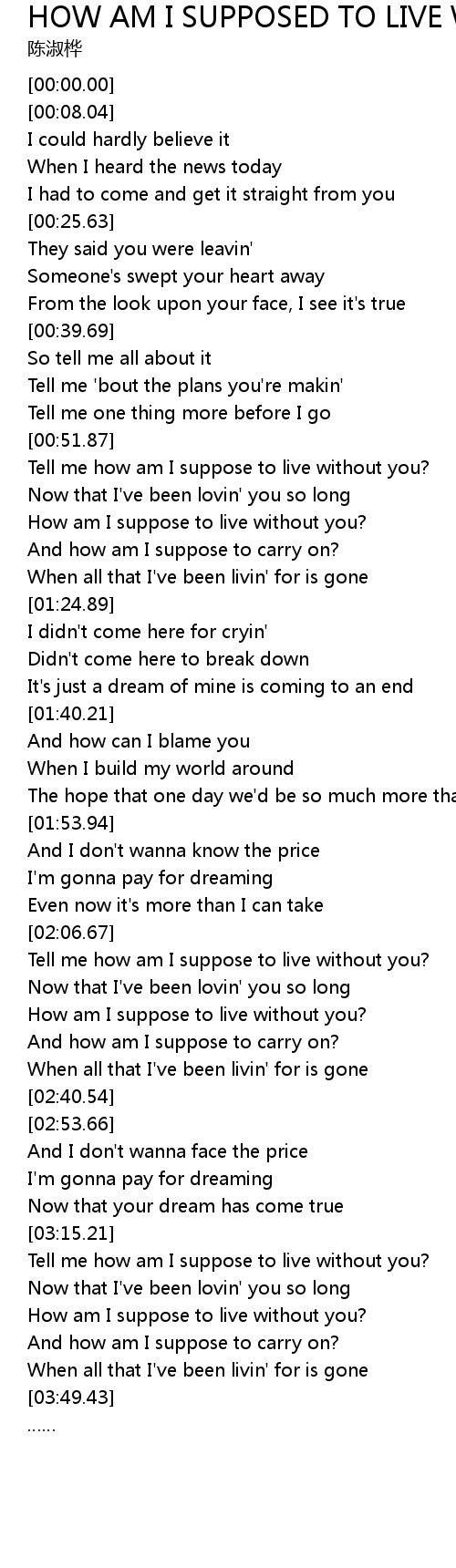 | [03:29.30] | How am I suppose to live without you? |