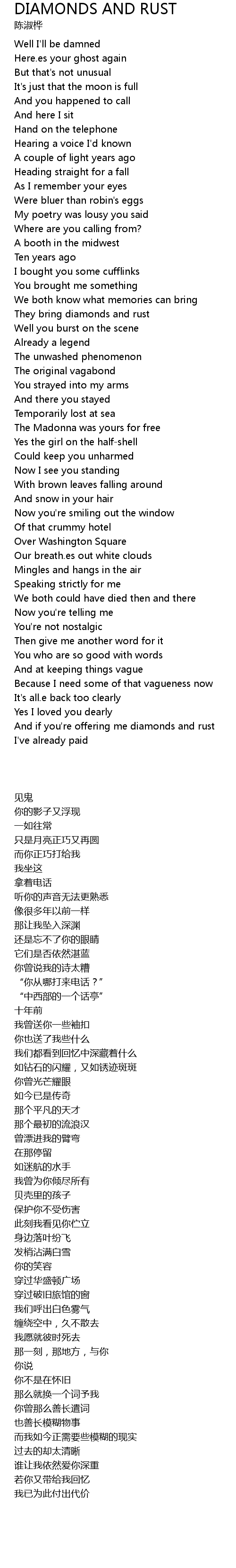| [03:56.626] | And if you' re offering me diamonds and rust |