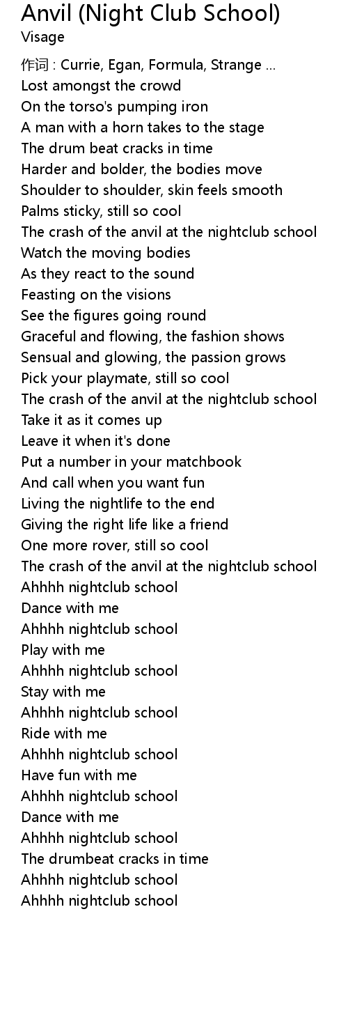 | The crash of the anvil at the nightclub school | |