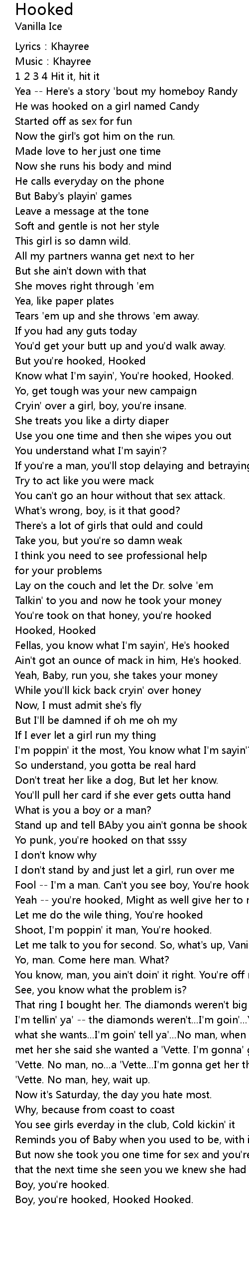 | Fool -- I'm a man. Can't you see boy, You're hooked. | |