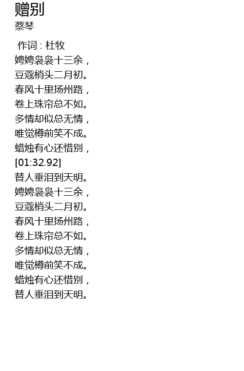 | [00:00.00] | 作词 : 杜牧 |