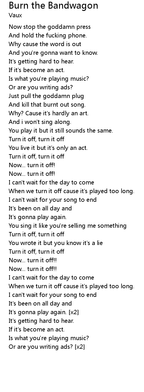 And kill that burnt out song. |