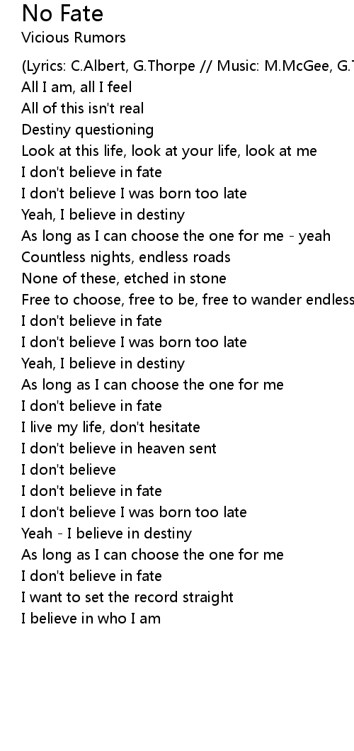 I don't believe in fate |