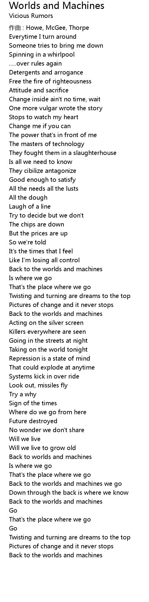 | 作曲 : Howe, McGee, Thorpe | |