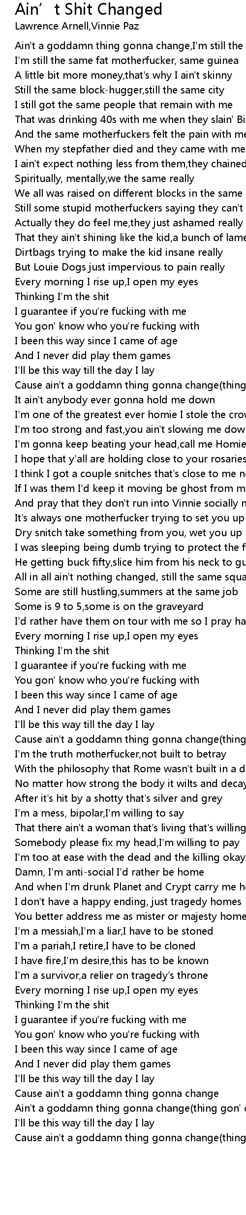 Ain't a goddamn thing gonna change,I'm still the same Vinnie |