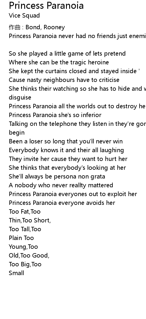 | Princess Paranoia never had no friends just enemies to drive her to a bitter end | |