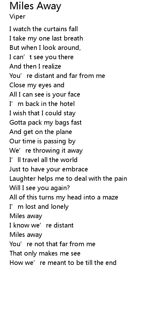 | Miles away | |