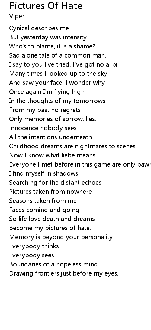 | Become my pictures of hate. | |