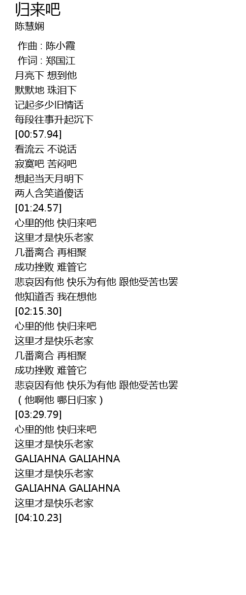 | [02:41.35] | xin li de ta kuai gui lai ba |
