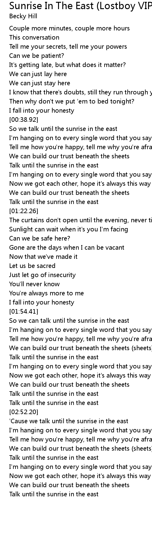 'Cause we talk until the sunrise in the east |