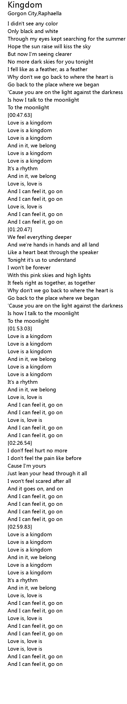 | [03:10.47] | Love is a kingdom |