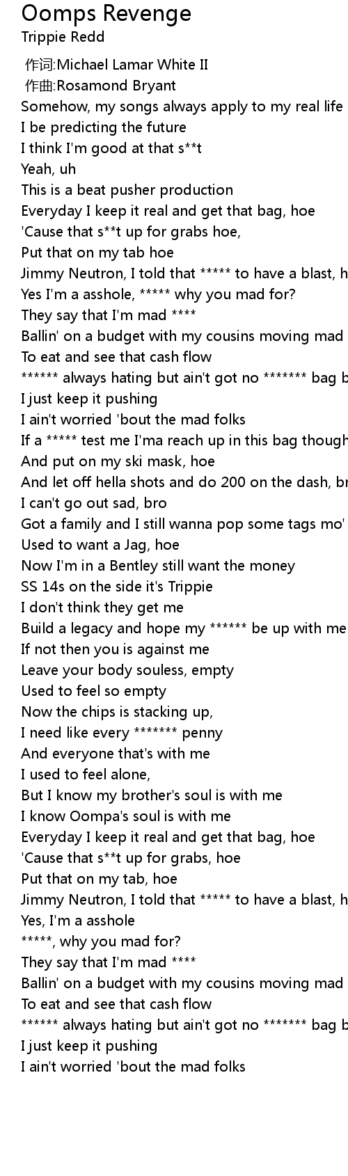 | [01:35.81] | ****** always hating but ain't got no ******* bag bro |