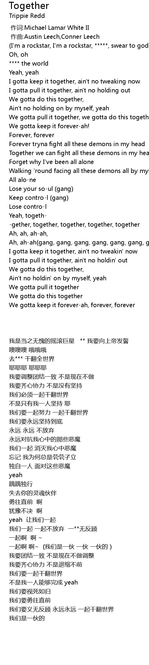 | [01:26.25] | -gether, together, together, together, together |