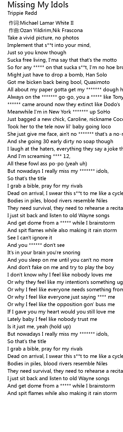 | [00:55.91] | But nowadays I really miss my ******* idols, |