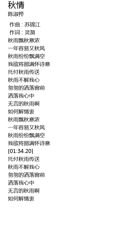 | [00:39.98] | 秋雨不解我心 |