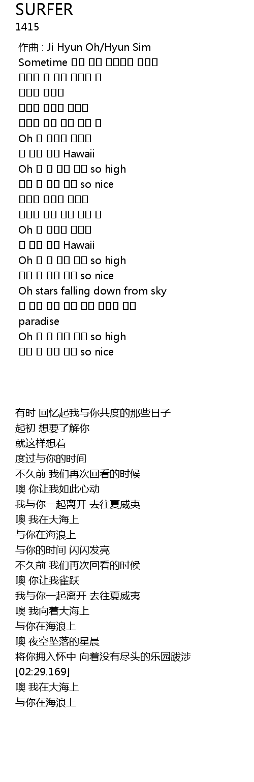 | [01:31.996] | 난 너와 떠나 Hawaii |