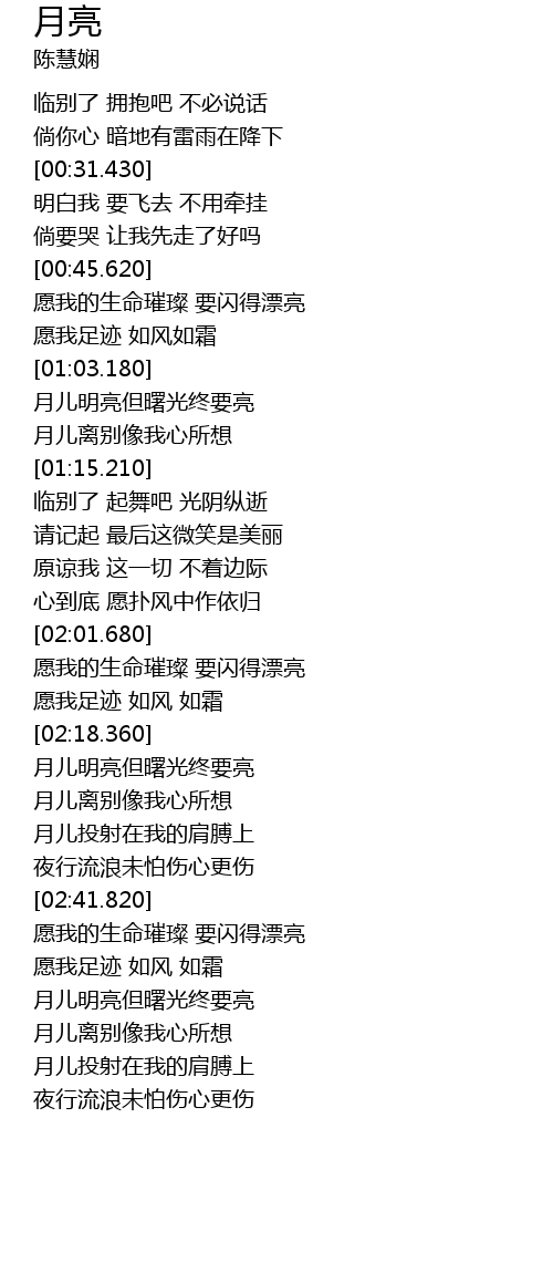 | [02:19.640] | yue er ming liang dan shu guang zhong yao liang |