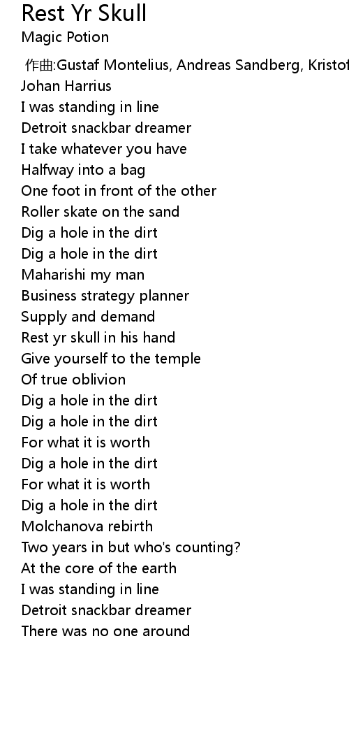 | [01:23.00] | Rest yr skull in his hand |