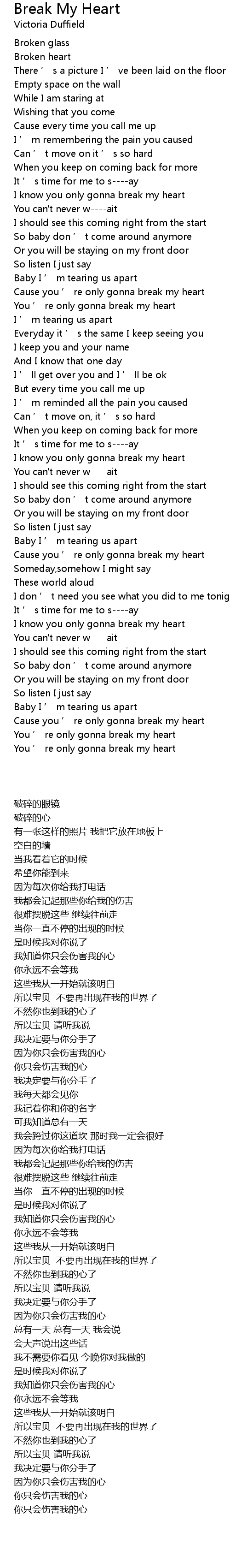 | [03:21.756] | Cause you ’ re only gonna break my heart |