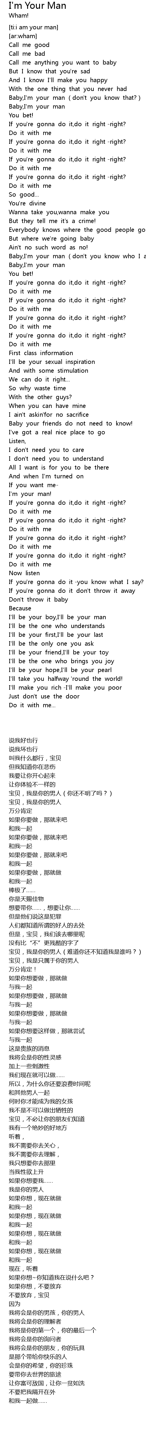 | [01:14.297] | Baby,I'm your man (don't you know who I am?) |