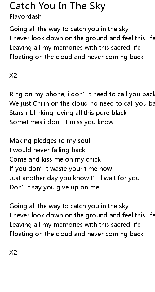 | We just Chilin on the cloud no need to call you back (yeah) | |
