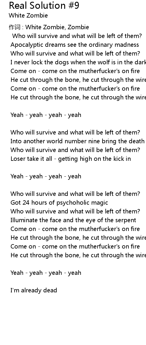 | 作词 : White Zombie, Zombie | |