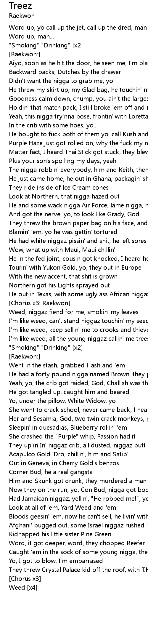 I'm like weed, all the young niggaz callin' me trees |