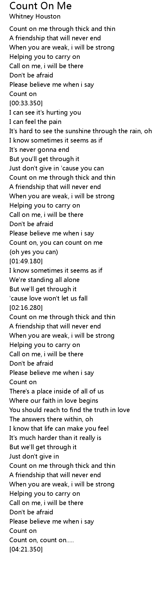 | [01:39.0] | Count on, you can count on me |