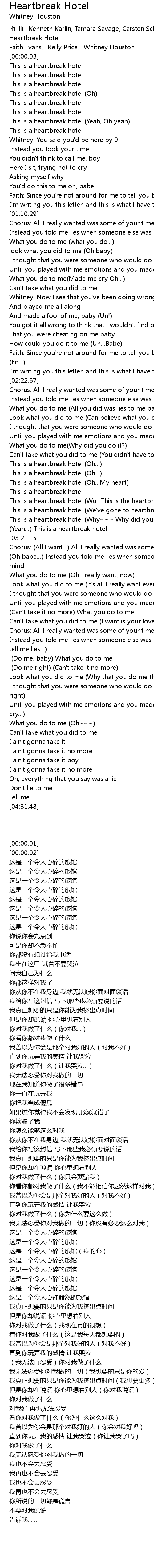 | [03:10.47] | This is a heartbreak hotel We' ve gone to heartbreak |