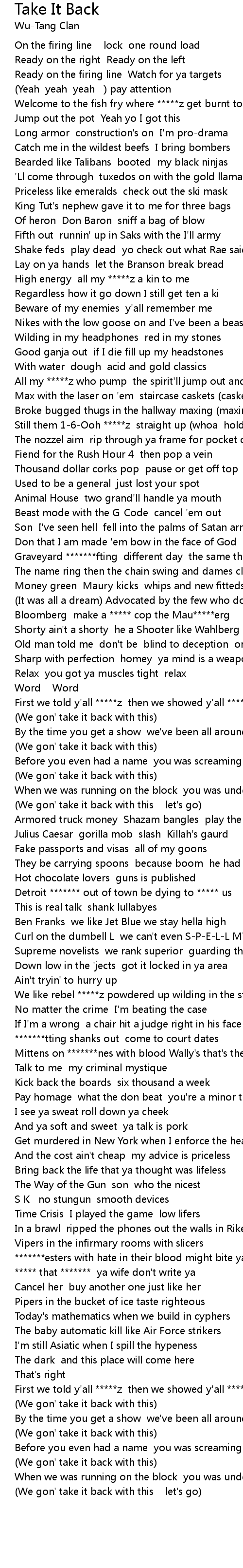 All my *****z who pump the spirit'll jump out and grab *******t |