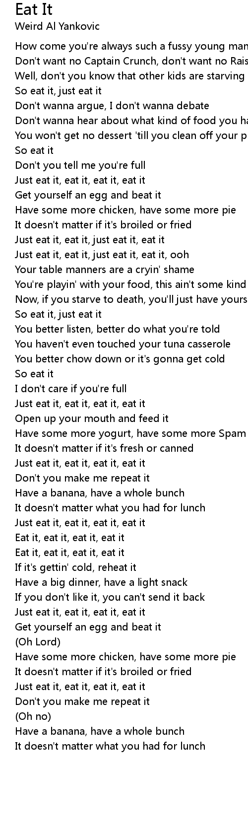 Just eat it, eat it, just eat it, eat it |