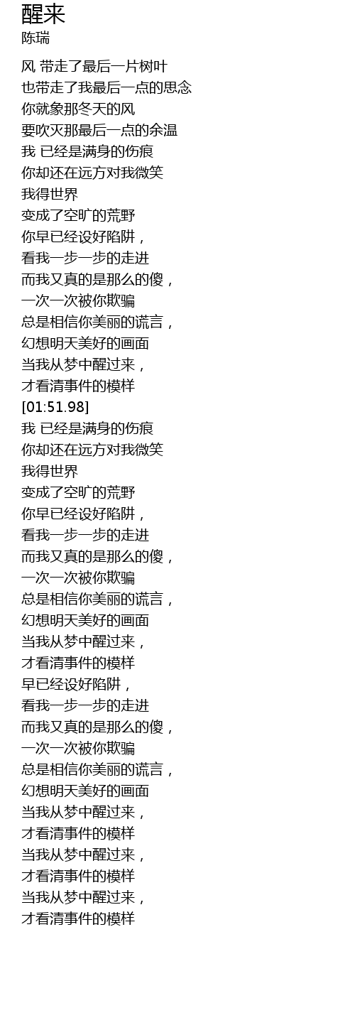 | [01:29.04] | 当我从梦中醒过来, |