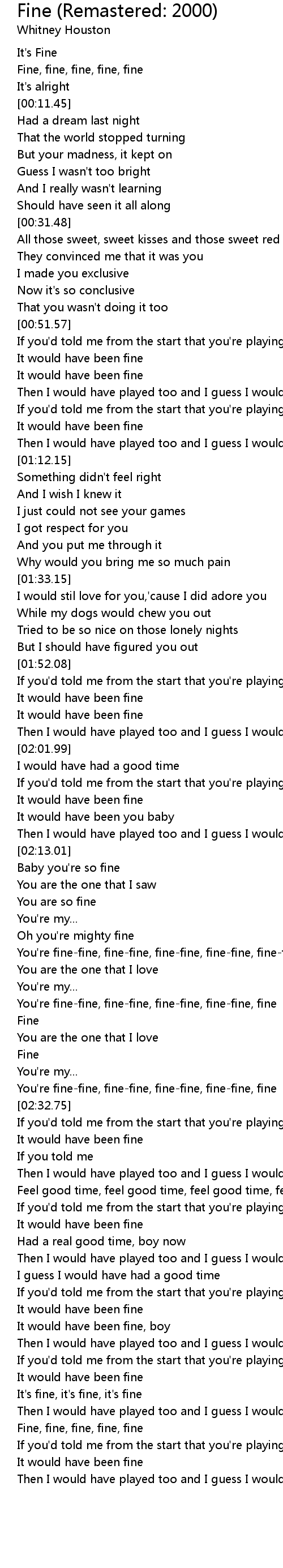You're fine-fine, fine-fine, fine-fine, fine-fine, fine |