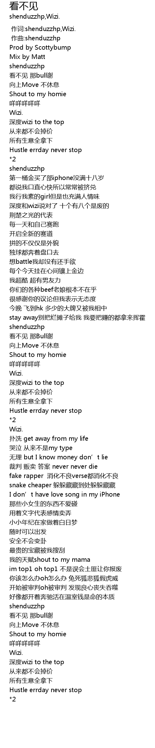 | [00:01.000] | 作词:shenduzzhp,Wizi. |
