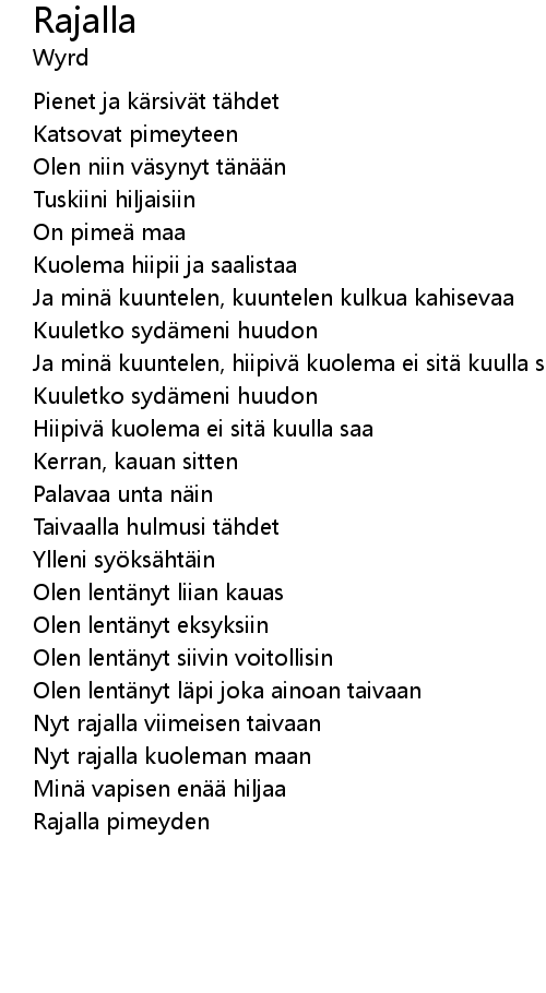 | Nyt rajalla viimeisen taivaan | |