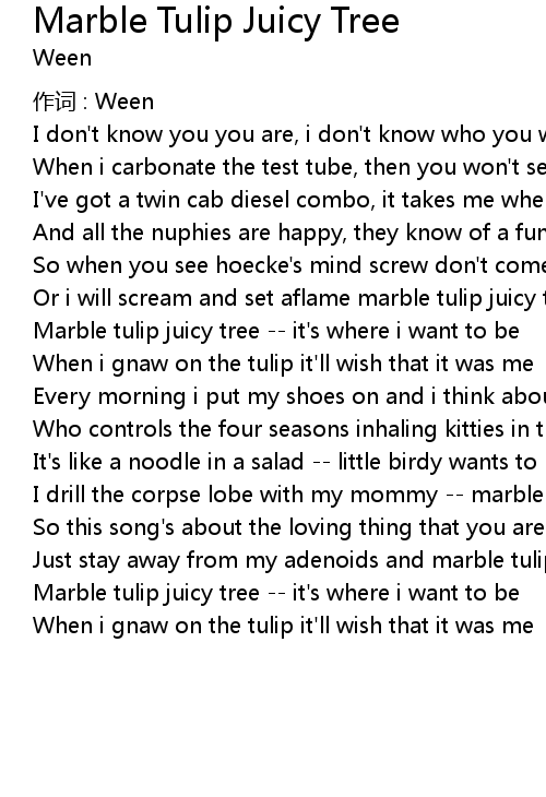 | Song | Marble Tulip Juicy Tree |