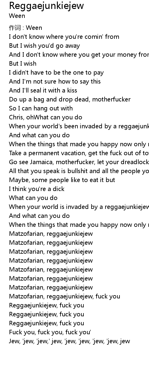 | Matzofarian, reggaejunkiejew, fuck you | |
